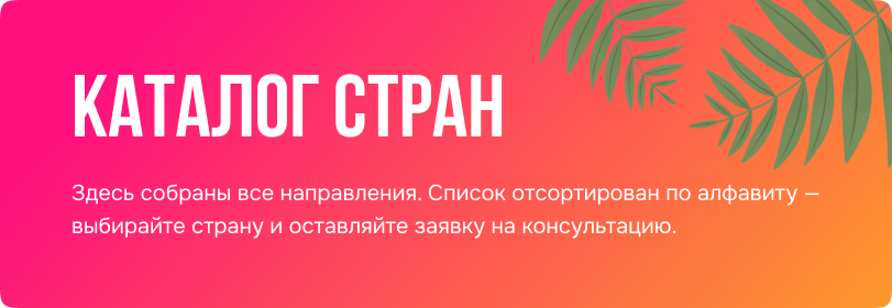 Здесь собраны все направления. Список отсортирован по алфавиту — выбирайте страну и оставляйте заявку на консультацию.